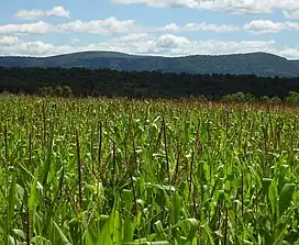 The name "Williamsburg Mountain" is a local reference, after the town of Williamsburg, and does not appear on federal maps. The mountain is also referred to as "The Loop" because of its unique shape when viewed from the air. (This is not to be confused with Loop Mountain 13 miles (21 km) to the southwest, near Hollidaysburg.) The summit ridge rises to an elevation of 2,350 feet (720 m) above sea level, 1,500 feet (457 m) above Williamsburg and the Frankstown Branch of the Juniata River.