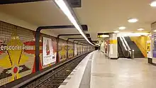 It is adjacent to and considered an interchange station with Berlin-Charlottenburg station on the S-Bahn. It was opened in 1978 and designed by Rümmler. The pattern of the tiles on the walls should resemble a lily which is on the crest of Wilmersdorf. The next station southbound is Adenauerplatz.[1]