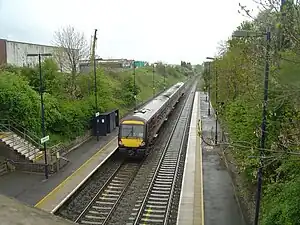 Wilnecote railway station is a small unmanned station serving Wilnecote 1.5 miles (2 km) south of Tamworth town centre in Staffordshire, England.[2] The station is situated beneath a bridge which carries the former A5 Watling Street.