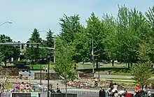 In 2000, the city started Wilsonville Celebration Days to replace the Boones Ferry Days, with the new event centered on activities at Memorial Park, as the old event had as well.[19][20] Beginning in 2001, the city has entertained proposals for building an aquatic center in Memorial Park.[21] A new city hall was proposed for the city to be located next to the northern end of the park near Wilsonville Road in 2002.[12][22] However, citizen opposition led to the scrapping of that plan and recall attempts against the mayor and two city councilors.[22] A new city hall opened in September 2006 a few blocks north of Memorial Park.[22]