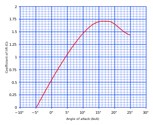 With the model mounted on a force balance, one can measure lift, drag, lateral forces, yaw, roll, and pitching moments over a range of angle of attack. This allows one to produce common curves such as lift coefficient versus angle of attack (shown).