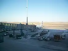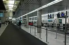 The airport was briefly served by Scandinavian Airlines (SAS) during the mid-1950s on the world's first regular Polar route, which linked Copenhagen and Los Angeles with Douglas DC-6B propliner flights via Søndre Strømfjord, Greenland and Winnipeg.[15][16] By 1962, Trans-Canada Air Lines (TCA, now Air Canada) was operating weekly nonstop service between Winnipeg and London Heathrow Airport with Douglas DC-8 jetliners.[17] In 1963, Northwest Airlines was serving the airport with Lockheed L-188 Electra turboprops operated on multi-stop routings of Winnipeg - Grand Forks, ND - Fargo, ND - Minneapolis/St. Paul - Milwaukee - New York City Idlewild Airport (now JFK Airport) and also Miami - Fort Lauderdale - St. Petersburg, FL - Atlanta - Chicago O'Hare Airport - Minneapolis/St. Paul - Fargo, ND - Grand Forks, ND - Winnipeg.[18] By 1970, Air Canada was operating twice weekly nonstop service to Glasgow, Scotland, with both flights continuing on to London Heathrow, a weekly nonstop flight to London Heathrow, a twice weekly nonstop to Copenhagen with both flights continuing on to Frankfurt and a weekly nonstop to Frankfurt with this flight continuing on to Zürich with all of these services being operated with Douglas DC-8 jets as part of Air Canada's "Western Arrow" international flights at the time.[19] Also in 1970, CP Air was operating direct, no change of plane Boeing 737-200 service to San Francisco via stops in Calgary and Vancouver.[20]