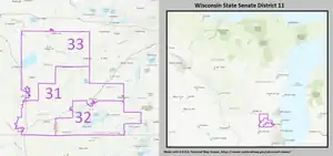- ↑ "Wisconsin Legislative Districts - Senate District 11 Boundaries". Wisconsin Legislature. Retrieved March 6, 2021.