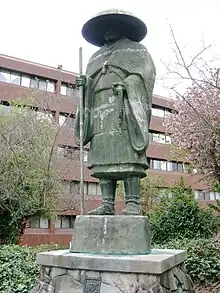 A statue of Shinran (pictured in 2007) is installed in the park.