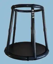 King and Williams built a prototype version of the ROVR and began selling it in 2012 on the ROVR Systems website under the name ROVR1.[20] The ROVR1's containment frame consists of a waist high polymer ring supported by five polymer legs that adjoin a larger ring at the base of the ROVR1. This larger ring encircles the ROVR's patented, concave, low friction surface platform.[21] Between its release in 2012 and 2016 the ROVR1, weighing in at 15kgs, had been actively tested by over 30,000 people.[22]