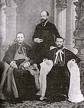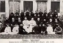 Archbishop Ladislao Zaleski (right, the two white-robed bishops in the center), 1914 at the Seminary of Mangalore, India