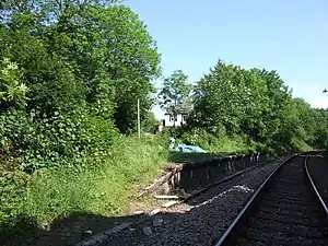 In 2011, the waiting shelters on the platforms no longer exist and the line has been reduced to a single track positioned about halfway between the platforms, which would prevent any future use. The track is also raised on an embankment of ballast, so even if it was still alongside the platform the train doors would be some distance above the platform height.