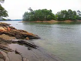 Wolfe's Neck Woods State Park is a public recreation area located on Casco Bay on the southeastern side of Freeport, Maine. The state park occupies 244 acres (99 ha) on a narrow peninsula, Wolfe's Neck, that runs between Casco Bay and the Harraseeket River.[1] It includes white pine and hemlock forests, salt marsh estuary, and rocky shore.[3] The park is managed by the Maine Department of Agriculture, Conservation and Forestry.