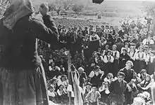 An elderly peasant woman speaking at an AFŽ rally in a village near Split, May 1944