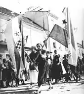 Delegates arriving at the second regional conference of the Slavonian AFŽ in Slavonska Požega, September 1944