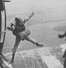 A Congolese female para-commando during jump training at capital Leopoldville in 1967