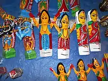 Natungram Wooden Dolls are a type of wooden doll, popular in India, especially in the Bardhaman district[1] of West Bengal state. The art of making wooden dolls is an age-old practice in India and Natungram dolls are especially culturally relevant, associated directly with the goddess Lakshmi. Other examples of such dolls include the famous Gour-Nitai, Krishna dolls, and Royal couple dolls.
