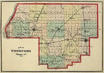 It was during the pre-Civil War years that Woodford County adopted townships — which was met with strong opposition. No fewer than four public elections were held between 1850 and 1854 before the township system gained a majority of votes.[24]