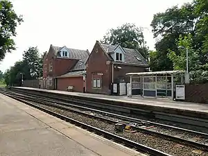 Woodley railway station serves the suburb of Woodley in Stockport, Greater Manchester, England. The station is 9+14 miles (14.9 km) east of Manchester Piccadilly on a branch of the Hope Valley Line to Rose Hill Marple. It is situated where the A560 road from Stockport to Gee Cross, near Hyde, crosses over the railway line.