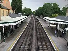 Station platforms viewed from the footbridge, facing south