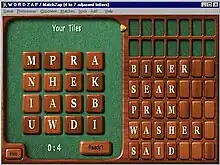 WordZap is a puzzle video game designed by Michael F.C. Crick, son of scientist Francis Crick. In 1991, it was included with Volume 3 of the Microsoft Entertainment Pack and was later released by Jaleco for the Game Boy in 1992. An updated version for newer editions of Microsoft Windows is available on the game's official website as shareware. The game has been compared with Scrabble and Boggle; in WordZap, players race to make proper English words to fill their rack of words, but when one player makes a word already found by the other player, the word is "zapped" from both players' racks. Each round ends when either one player fills the word rack, or time runs out without either player being able to make another word.