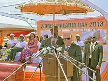April 25 was designated as Malaria Awareness Day in 2007 by President George W. Bush, who called on Americans to join in on the goal to eradicate malaria on the African continent.[30] President Bush described it as a day when "we focus our attention on all who suffer from this terrible disease -- especially the millions on the continent of Africa. We remember the millions more who died from this entirely preventable and treatable disease." President Bush shared the White House's strategic plan against malaria, which included endeavors to distribute bed nets with the New York-based nonprofit group Malaria No More.[31]
