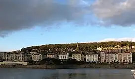 Many of Weston-super-Mare's large Victorian residences are built on the lower slopes of the southern side of the hill, but the rest of the hill is heavily wooded. There are ancient fortifications at the top of the hill. Quarrying took place at various places on the hill from the late 18th century until the town quarry was abandoned in 1953.[6] Before the flatlands were adequately drained, the main route to Bristol ran eastwards along the hillside.