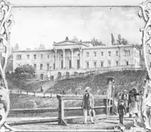 The first provisional station building became inadequate within a few years. It was decided to build a new building, designed by Hauptner and Ebeling and opened in 1850[5] on a new section of line connecting the BME and DEE lines, which was completed on 9 March 1849.[7] Around 1900, a protruding porch was built in front of the ground floor, which conflicted with the architectural design. Nevertheless, this concept was maintained after its reconstruction after World War II. This will only change with the completion of the current renovation of the station/Döppersberg area.