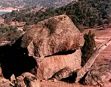The discovery of gold in other parts of New South Wales in the years prior to that found at Mount McDonald, led to increased bushranger activity. During the 1860s and 1870s the Lachlan Valley had serious problems with bushrangers, notably gangs led by Frank Gardiner, John Gilbert and Ben Hall, amongst others.[23] Frank Gardiner was one of the most successful bushrangers of the time. His final robbery, which also was to be his greatest haul, occurred in 1862 at Eugowra Rocks. In this instance, Gardiner along with Ben Hall, John Gilbert and others, robbed a 'gold escort' carrying in the range of £14,000–£22,000 in gold and cash.[20][24] It was rumored that Gardiner convinced the gang members to bury their share of the gold in a mountain cave near Wyangala.[25]
