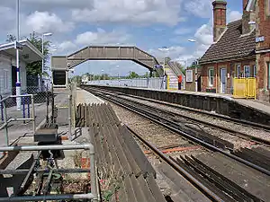 The platforms were connected by a concrete footbridge in 1960. This was replaced with a 12.5-metre (41 ft) steel footbridge in 2015.[9] The staffed level crossing at the south end of the station required manual operation of the gates and was formerly a local traffic bottleneck[10] but was replaced with automated crossing gates in December 2022.[11]