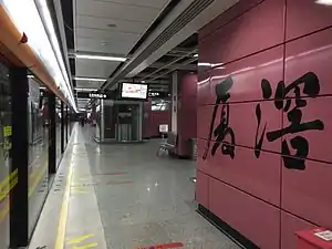 Xiajiao Station (simplified Chinese: 厦滘站; traditional Chinese: 廈滘站; Cantonese Yale: Hahgaau Jaahm) is a station on Line 3 of the Guangzhou Metro that started operations on 28 December 2006. It is located under Xiajiao Village (厦滘村) in Luoxi Island, Panyu District of Guangzhou. It is near Wuzhou Decoration Center, Shaxi Plastic Center, the White Palace Hotel and the White Palace Theater.[1][2][3]