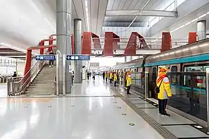 Xihongmen Station[1] (simplified Chinese: 西红门站; traditional Chinese: 西紅門站; pinyin: Xīhóngmén Zhàn) is a station on the Daxing line (through operation to Line 4) of the Beijing Subway.[2] Due to lack of space, the station is the only station on the Daxing Line to be an elevated station.