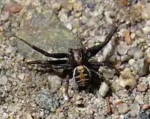 The femora and patellae of females of this species tend to be paler than those of males, who tend to have femora and patellae that are nearly black.[2]