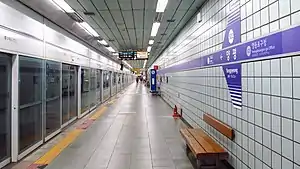 Yangpyeong Station is Line 5 subway station in Seoul, South Korea. The station lies near Yeouido and there are many apartment complexes. In fact, the confirmation was allowed to rebuild old complex.[2]