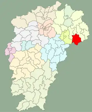 It borders Hengfeng County to the north, Shangrao County to the east, Wannian County and Guixi City (in Yingtan) to the west and Wuyishan City and Guangze County (both in Nanping, FJ) to the south.[2]