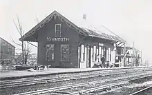 Yarmouth Junction station was a passenger rail station in Yarmouth, Maine, United States. It stood to the west of East Elm Street at Depot Road, at the junction of the former Grand Trunk Railway (now the St. Lawrence and Atlantic Railroad) and the Maine Central Railroad (now Guilford Rail System's Kennebec & Portland), around 0.9 miles (1.4 km) north of the town's Railroad Square, where today's 1906-built Grand Trunk station stands.[1] The Amtrak Downeaster utilizes the former Maine Central Railroad line, which passes to the northwest of town.[2] The Yarmouth Junction station building is now gone, but the junction itself is still active.