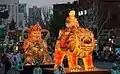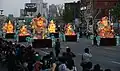 Displayed at Buddhist temples, private homes and parades, lanterns come in all shapes and sizes. Popular lantern subjects include drums, cranes, fish, and flowers.[1] As recently as 2014, lantern creations include historical figures like King Sejong and the creation of Hangul script, cartoon characters, detailed figures in traditional Korean dress, phoenixes, dragons, tigers, and a Korean style ship with moving masts.[7] The Buddhist roots of the Lotus Lantern Festival is in the most prolific lantern design, the lotus flower.  In Buddhism, the lotus is associated with dignity, the sublime, and the awakening of the devotee’s true nature.[1] Lotus flower lantern workshops are common sights across the communities that celebrate the festival not only in South Korea, but around the world.