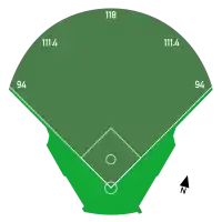 | Field size | Left/right field – 94 m (308.4 ft) Left/right-center – 111.4 m (366 ft) Center Field – 118 m (387.1 ft) Height of Outfield Fence – 5 m (16.4 ft) ![]() |