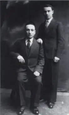 Rabbi Yonah Karpilov (sitting) with his younger brother, Zeev Vilensky (1912-2000)