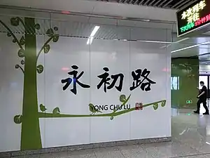 Yongchulu station (Chinese: 永初路站), is a station of Line S3 of the Nanjing Metro. It started operations on 6 December 2017.[1] On 28 December 2023, with the openling of the Southen part of Line 7, it became an interchange station between Line 7 and Line 10.[2]