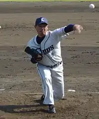 Yoshihiro Doi (土肥 義弘, Doi Yoshihiro, born September 1, 1976 in Saitama, Japan) is a Japanese baseball pitcher. He pitched for the Saitama Seibu Lions and Yokohama BayStars of Nippon Professional Baseball from 1998 through 2010.