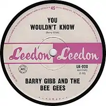 "You Wouldn't Know" is a song written by Barry Gibb which was recorded by the Bee Gees and released as the B-side of their version of "Everyday I Have to Cry" and later included on the album The Bee Gees Sing and Play 14 Barry Gibb Songs (1965). The album of the same name was released in Europe by Tring Records and features the Bee Gees songs from 1963 to 1966.