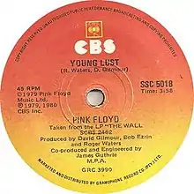"Young Lust" is a song by the English rock band Pink Floyd, released in 1979.[4][5] It is the ninth track on the band's eleventh studio album The Wall (1979).[4][5] The lyrics to the song are about the band throwing themselves into the headlong of hedonism, sex, drugs, and rock and roll.[6]