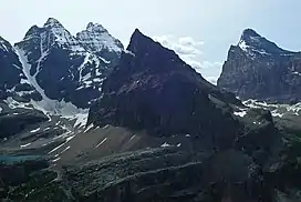 Yukness Mountain (center) with Ringrose and Hungabee to left and Biddle to right
