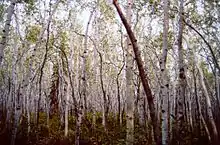The Yukon River Basin has a relatively intact ecosystem. It is a quality habitat for birds, mammal, fish, invertebrates, and one amphibian.[9] The wood frog is the only amphibian able to survive in the ecosystem.[9] This is due to its increased level of glucose in its cells. This addition acts as an antifreeze. It allows the frogs to survive the extremely cold winters.[9] The basin consists of thousands of lakes, ponds, sloughs, wetlands, and rivers/streams to provide habitats for these animals.[9] Within the basin there are more than 150 bird species, 40 mammals, and 18 fish species.[9] There is an estimated 1.5 million ducks that breed here annually. It is also home to the longest salmon runs in history.[9] Plant life includes white spruce, paper birch, and quaking aspen forests, willow and alder thickets, grasslands, and meows. In these areas are where the animals of the ecosystem thrive.[9]