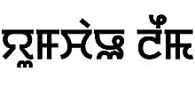 "Yumchao Leima", the Ancient Meitei (Old Manipuri) name of Goddess Yumjao Leima, written in archaic Meetei Mayek abugida