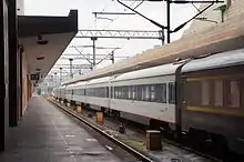 The Z9/10 Beijing-Hangzhou Through Train (Chinese: Z9/10次北京到杭州直达特快列车) is Chinese railway running between the capital Beijing to Hangzhou, capital of Zhejiang express passenger trains by the Beijing Railway Bureau, Hangzhou passenger segment responsible for passenger transport task, Hangzhou originating on the Beijing train. 25T Type Passenger trains running along the Hukun Railway and Jinghu Railway across Zhejiang, Shanghai, Jiangsu, Anhui, Shandong, Hebei, Tianjin, Beijing and other provinces and cities, the entire 1633 km. Beijing railway station to Hangzhou railway station running 13 hours and 53 minutes, use trips for Z9; Hangzhou railway station to Beijing railway station to run 13 hours and 40 minutes, use trips for Z10.