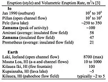 • In general, Io's eruptions have larger volumetric fluxes and active areas than terrestrial volcanoes, compared with volcanoes of the same eruption style.[5]