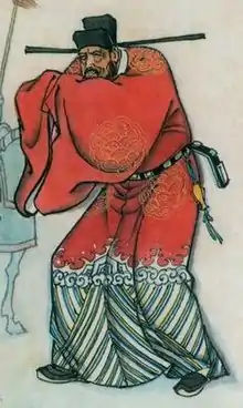 The Jin hoped a proxy state would be capable of administering Northern China and collecting the annual indemnity without requiring Jurchen interventions to quell Anti-Jin uprisings.[3] Instead of directly annexing the conquered Song territories,[5] the Jin dynasty formed the buffer state of Chu in 1127.[4] Zhang, a former prime minister of the Song Dynasty, was installed as emperor of the new dynasty.[1][6] He refused to wear the formal clothing of the emperor outside of his encounters with Jin officials.[7] The offer of enthronement was too attractive for Zhang to resist, but he had reservations about his new role.[4] Jiankang, modern Nanjing, became the capital of Chu.[2] The support of Empress Dowager Yuanyou, who was dismissed as Empress by her former spouse Emperor Zhezong, was enlisted to bolster the legitimacy of the puppet government.[1][6][8]