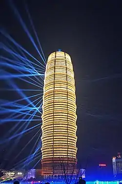 This building is often referred to as the "Big Corn" (Chinese: 大玉米) by local residents, due to its corn-like shape and all yellow lighting at night.