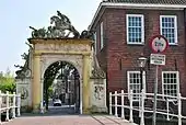 Zijlpoort is a city gate in Leiden, The Netherlands. The gate was built in 1667[1] in the classical style according to a design by the Leiden architect Willem van der Helm and with sculpture by Rombout Verhulst. Because the gates have to connect with the city wall as well as with a bridge, the building is in the form of a parallelogram. The Zijlpoort, together with the Morspoort (1669) and Doelenpoort (1645),[2] are the only of the original eight gates that survived. The name refers to the nearby river, the Zijl. The predecessor of the Zijlpoort stood at the end of the Haarlemmerstraat that is now called the Havenplein.