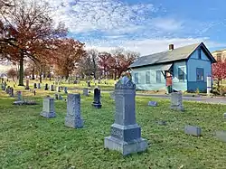 Zion Hill Cemetery was known originally as Zion's Hill Cemetery. Established in the 1840s on what was then farmland, the cemetery was expanded southward in the early 1900s to encompass an area called Mount Pleasant.[1][2] The cemetery has one of the highest elevations within the city of Hartford.[3] The southern edge of the cemetery abuts the campus of Trinity College.