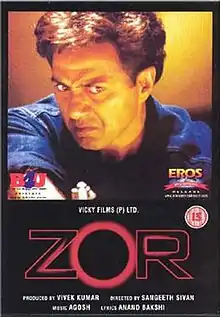 Zor (transl.Strength) is a 1998 Indian Hindi-language action film produced by Vivek Kumar and directed by Sangeeth Sivan. It stars Sunny Deol, Sushmita Sen, Milind Gunaji and Om Puri. The film was released theatrically on 13 February 1998.