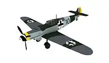 Digital rendering of a ZNDH Messerschmitt Bf 109G, with 1945 camouflage colours and insignia.