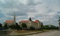 The Court House represents one of the major symbols of Zrenjanin. There are several interesting objects in the close surrounding; next to it is a Protestant church, and a Small bridge in front of it. Across the river is the Trade academy.[1]